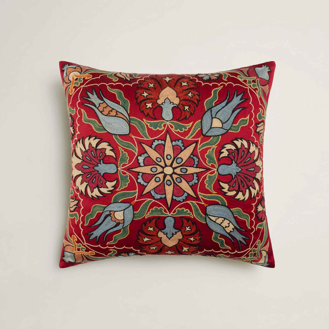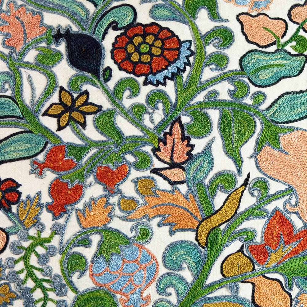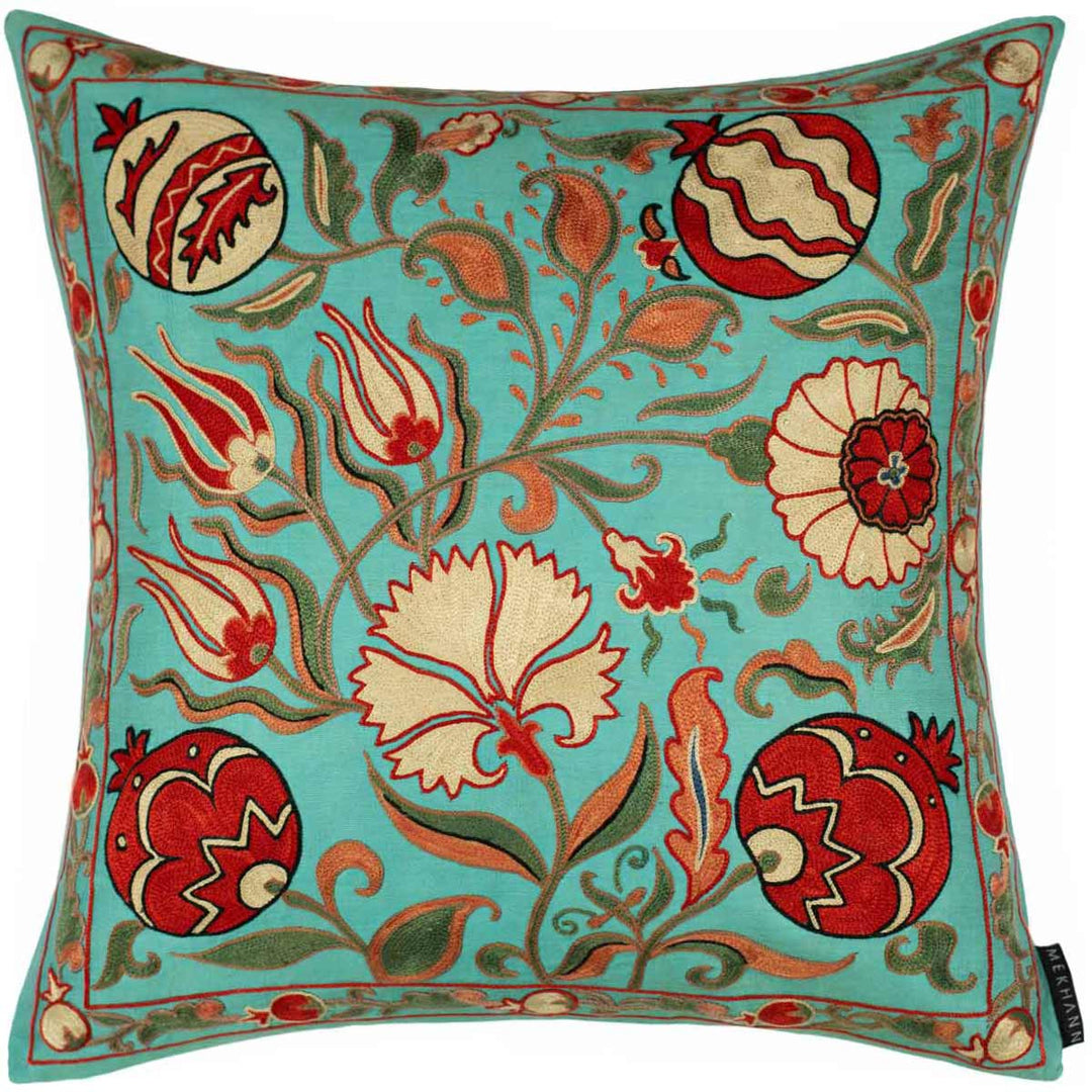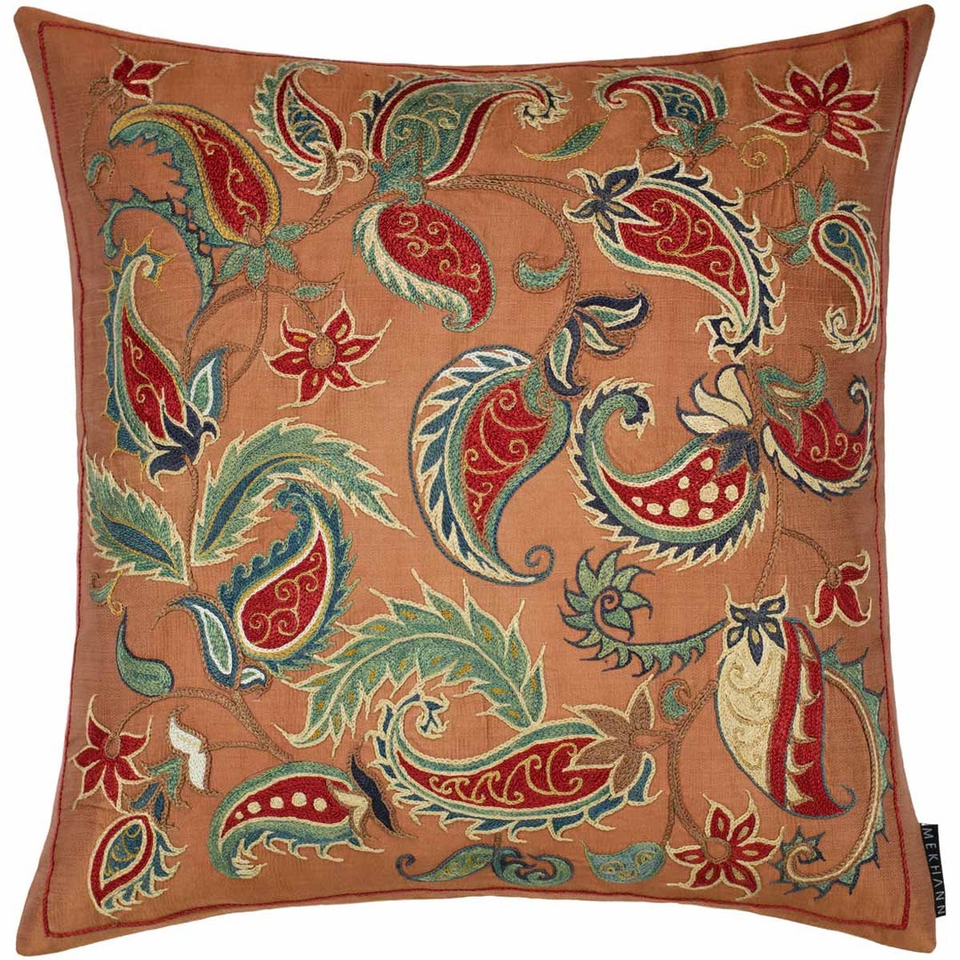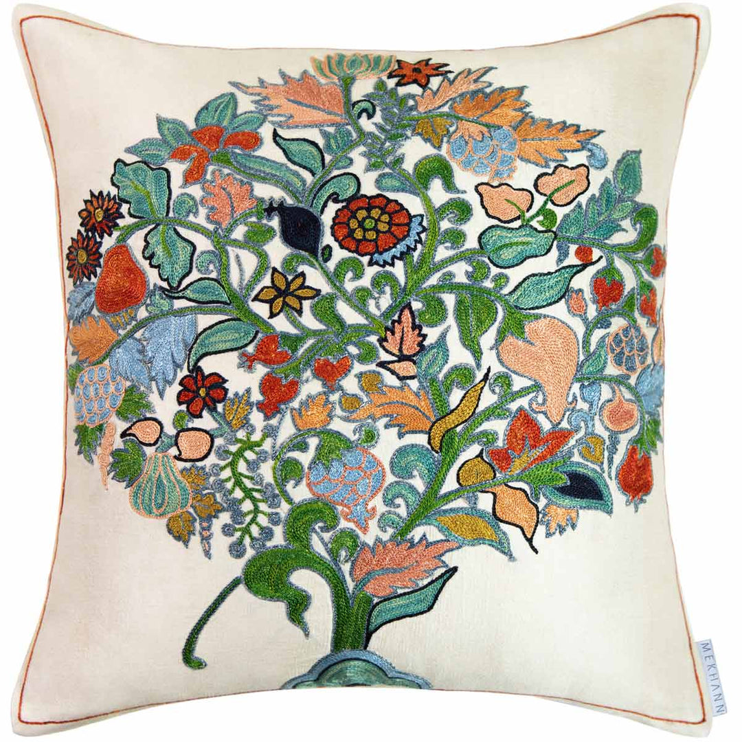 Mekhann’s hand-embroidered cushions are individually composed on silk using the traditional chain stitch technique, refined through a contemporary lens.