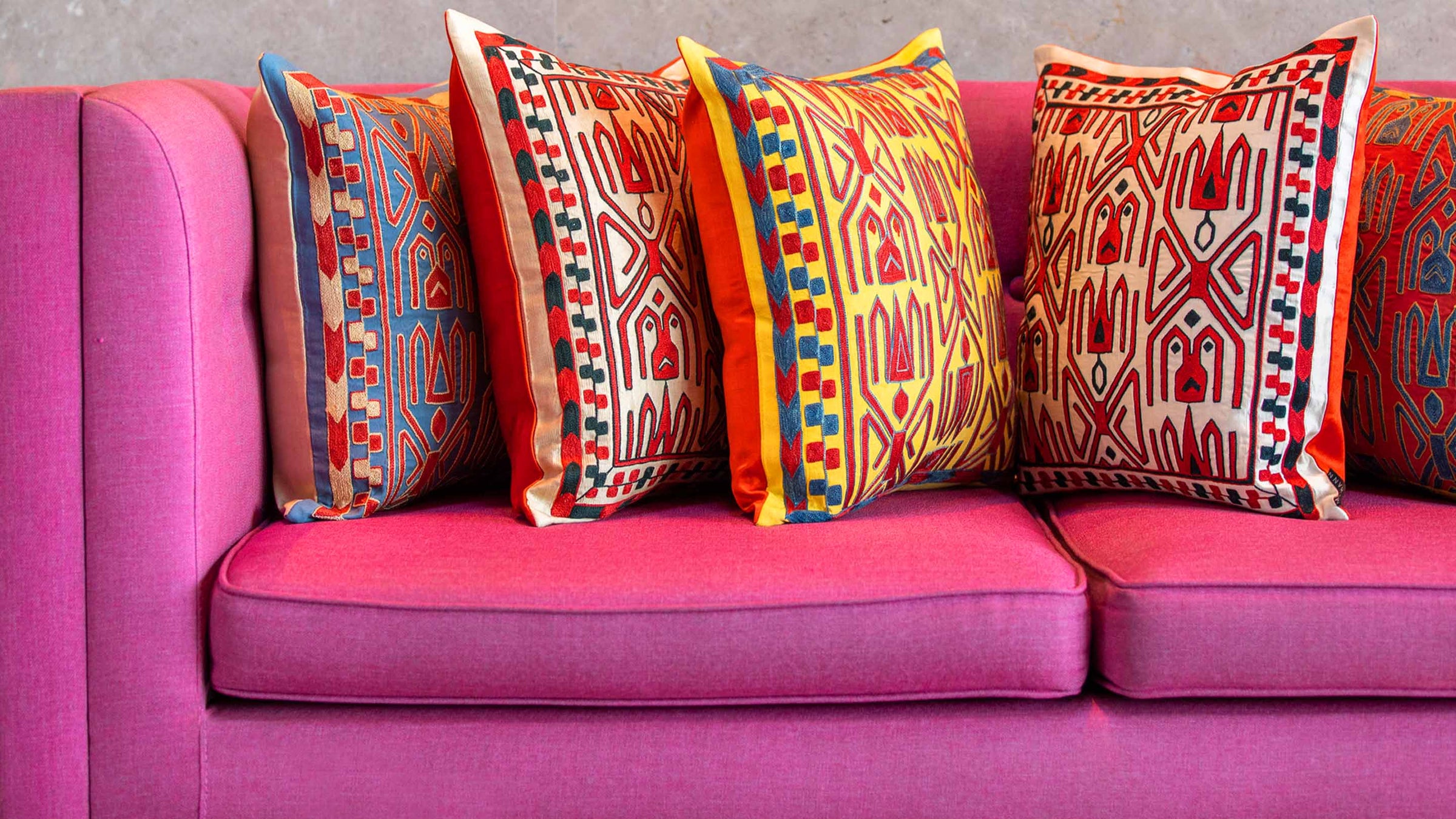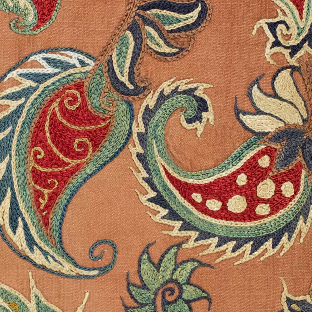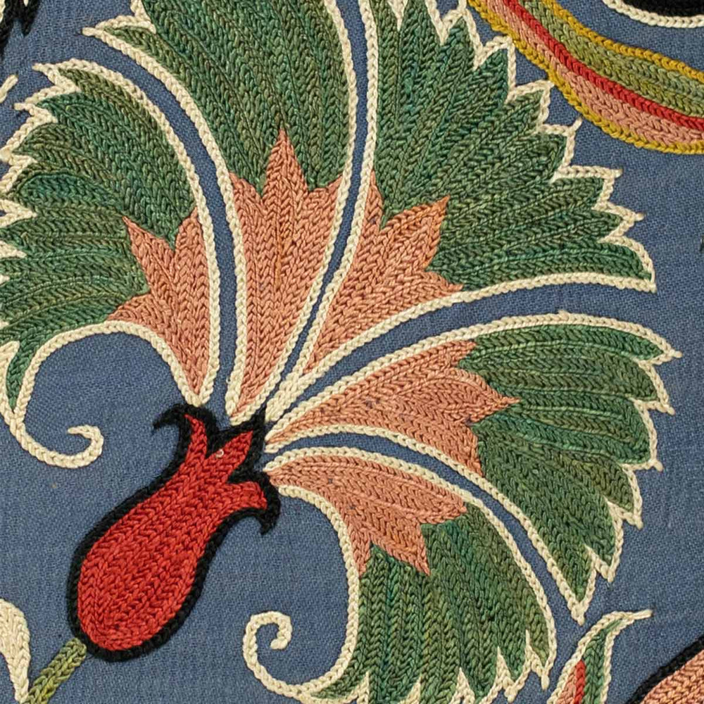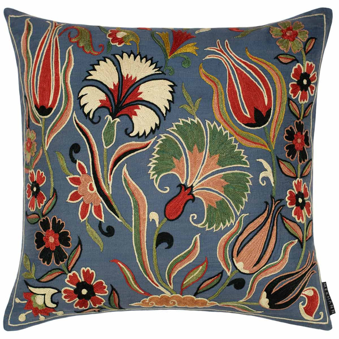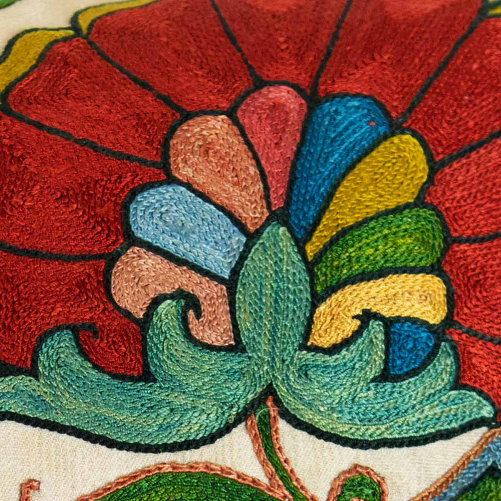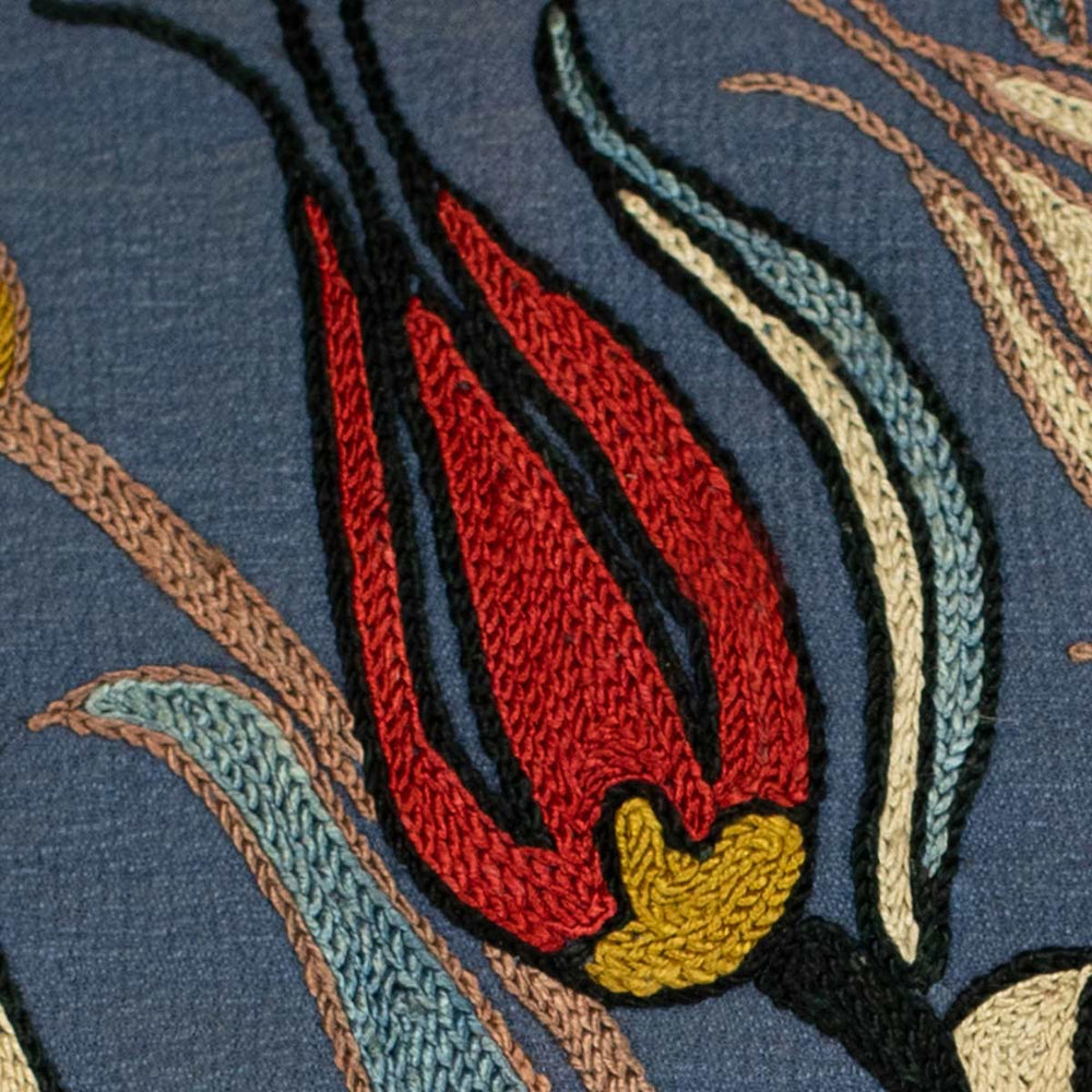 Mekhann’s hand-embroidered cushions are individually composed on silk using the traditional chain stitch technique, refined through a contemporary lens.