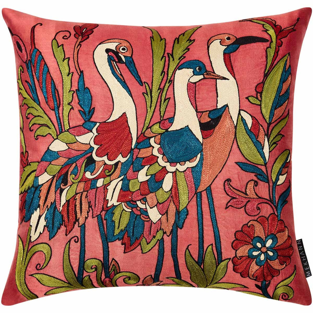 Mekhann’s hand-embroidered cushions are individually composed on silk using the traditional chain stitch technique, refined through a contemporary lens.